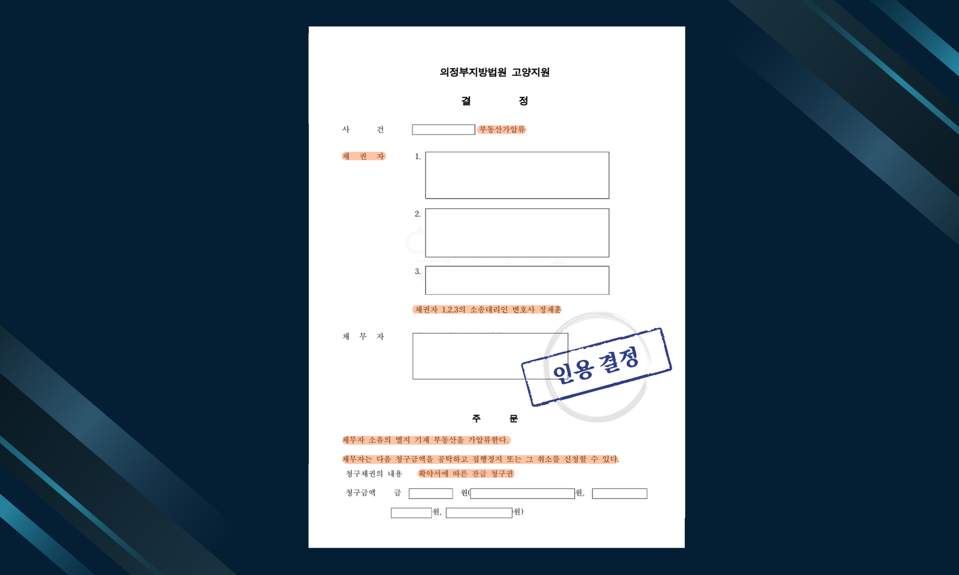 부동산가압류가 인용되었습니다.