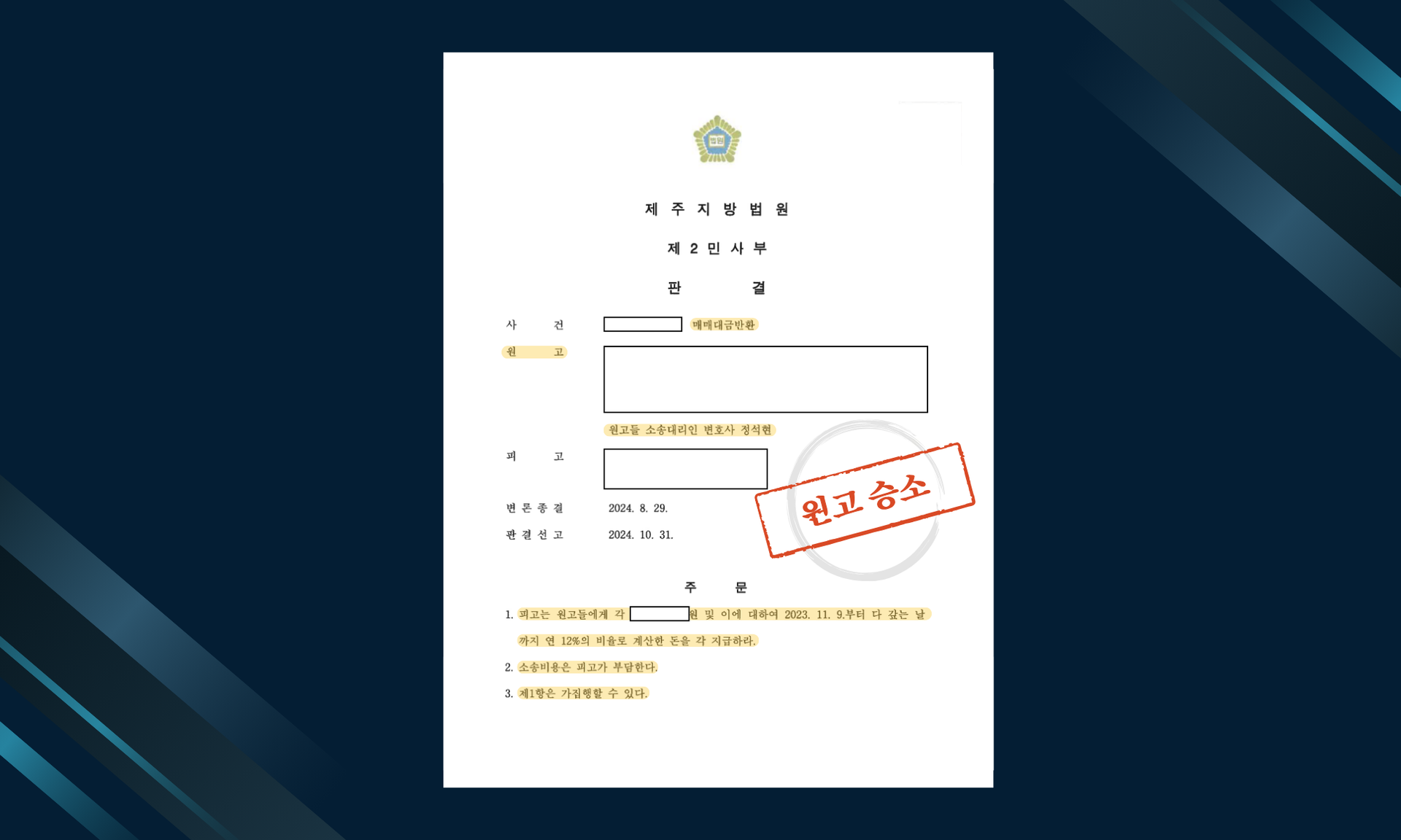 매매대금반환 전부 승소