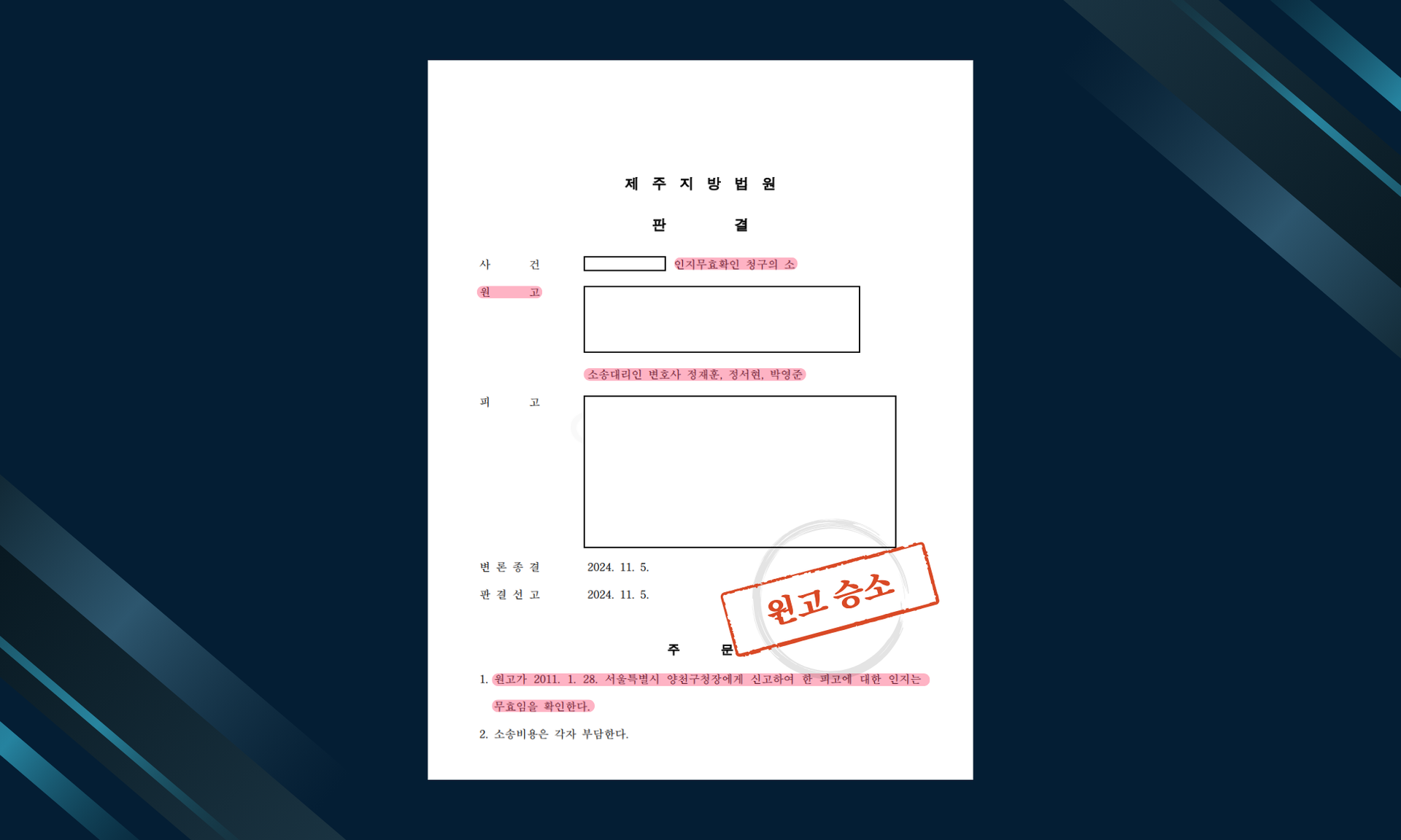 인지무효확인청구 승소
