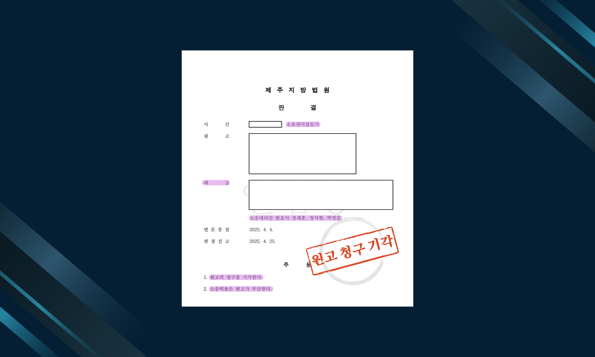 소취하에 동의하지 않고 끝까지 소송 유지하여 전부 기각하는 판결을 받았습니다.