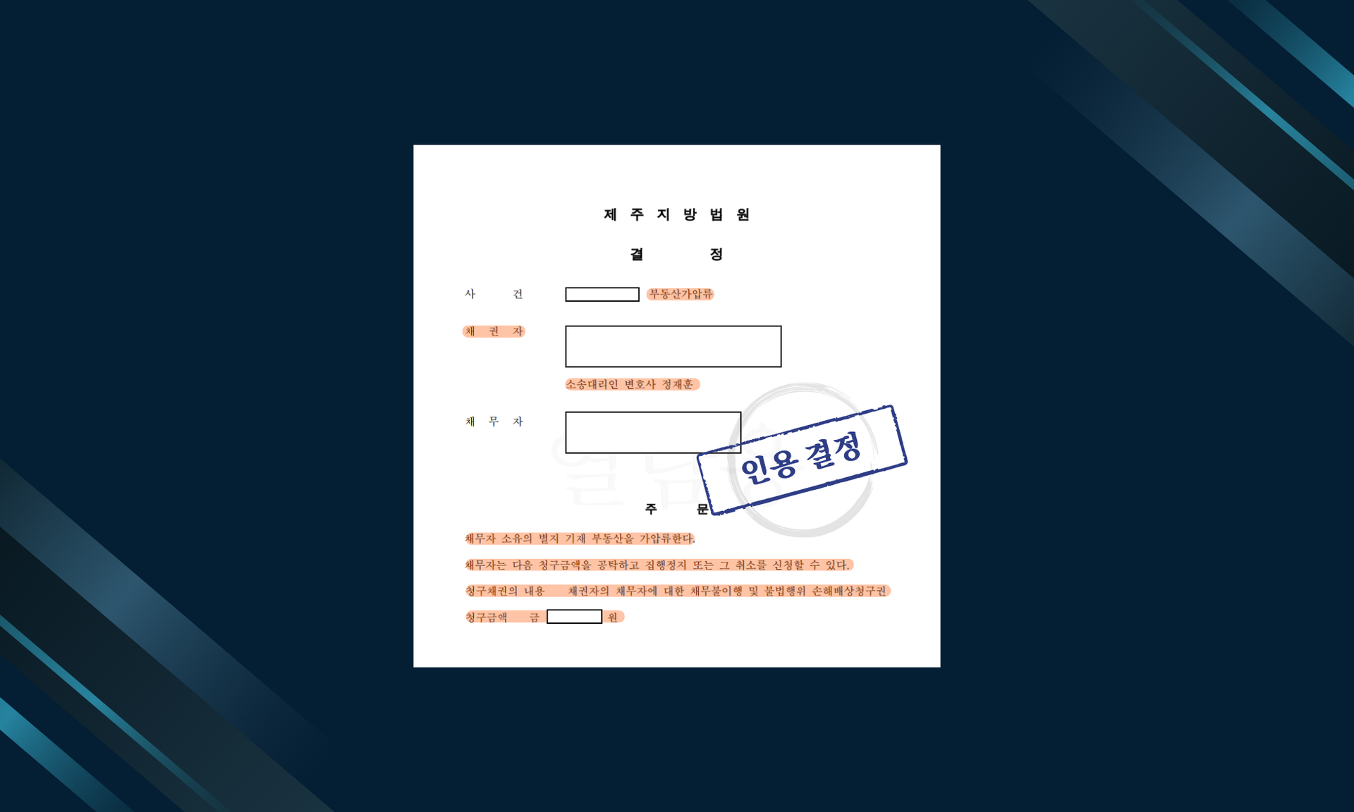 부동산가압류신청이 인용되었습니다.