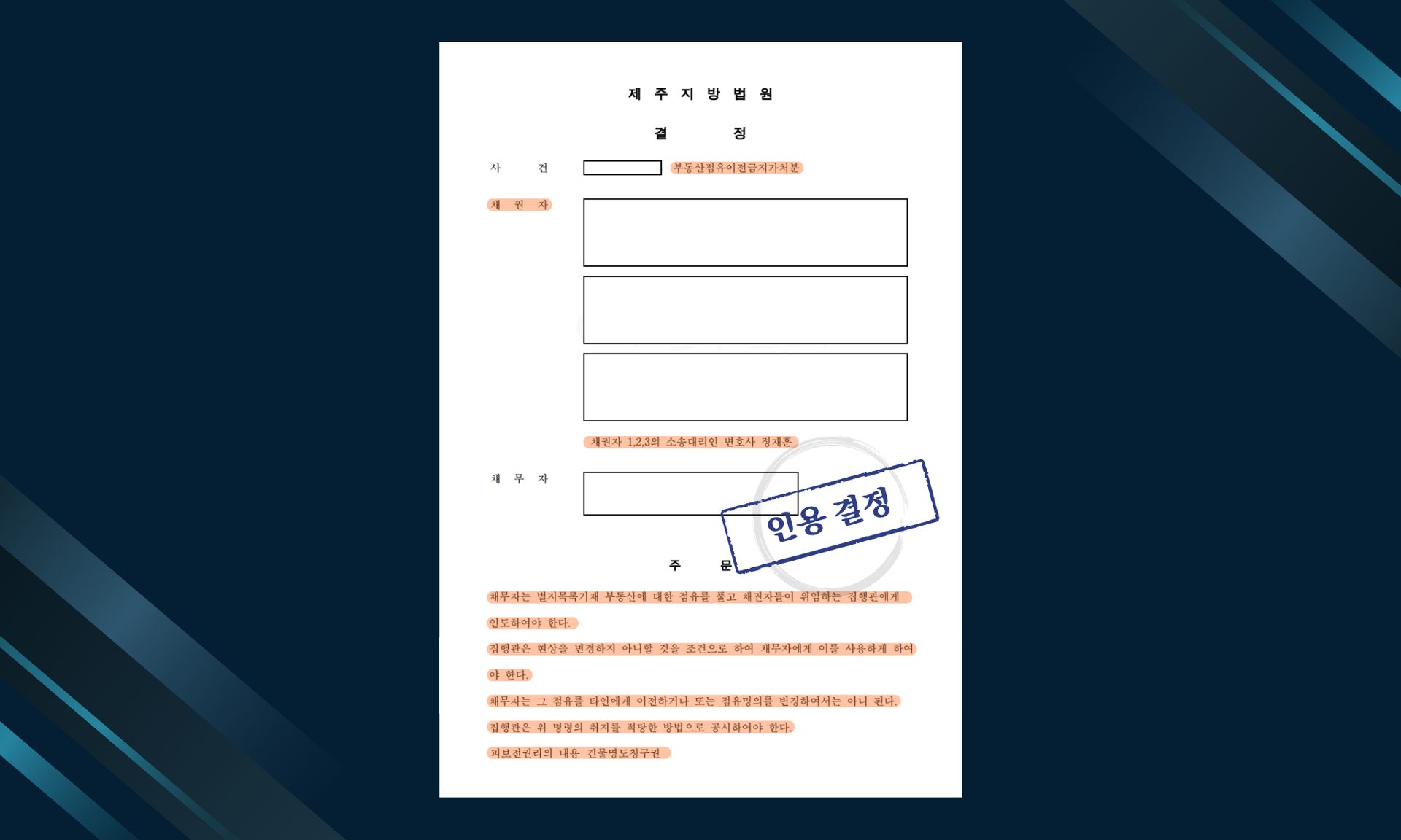 부동산점유이전금지가처분이 인용되었습니다.